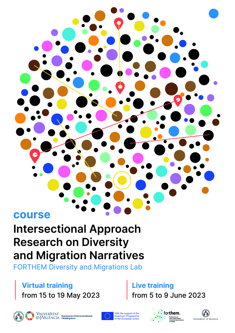 The Intersectional Approach Research on Diversity and Migration Narratives program (3 ECTS, 90 hours) is strongly supported by the FORTHEM Diversity and Migrations Lab. The involvement, knowledge and expertise of the colleagues from the partner universities is essential for this event to take place. This program is a “blended” course and includes one or more parts that are performed online and one part which is performed in person at the host university (Universitat de València, Spain). It is a programme carried out mainly in English language with some optional events in other European languages.